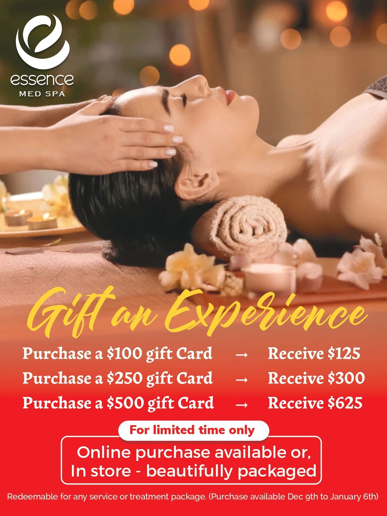 Treat someone special with a gift card from Essence Med Spa. The perfect gift for any occasion!